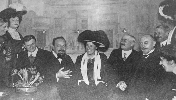 Om ikke Sindene var optaget af saa mange andre Ting, vilde det sikkert vække Opsigt i vide Kvindekrese. Suffragetterne i England vilde kaste deres Blik over til dette lille Land, hvor en skare Forfattere vælger en Kvinde til Formand for deres Forening. Hvis de ikke havde andet at tænke paa i Tyskland – Dramatikernes store og rige Marked – saa vilde Fru Gads Valg dernede vække særlig Opsigt. Teatrene i Tyskland vilde sikker med forøget Interesse kaste sig over de danske dramatiske Forfattere, som har valgt en Admiralinde til Formand. Vel er Tyskland en Militærstat, men noget lignende er vist aldrig hændt dernede.