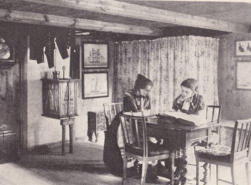 Se f. Eks. blot paa de gamle Sadler fra Slutningen af det 18. Aarhundrede [omlavet til stole] med deres rige ornamentik; den store Montre med Højtidsdragterne; de mange vævede Sager; Billedskærerarbejderne o. s. fr.