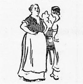Og saa gik de Kongelige ind paa Udstillingen, og lige indenfor Døren foran Victor og Alberta, lidt borte fra de smaa sorte Grise, stod Fru Wiehe og nejede.