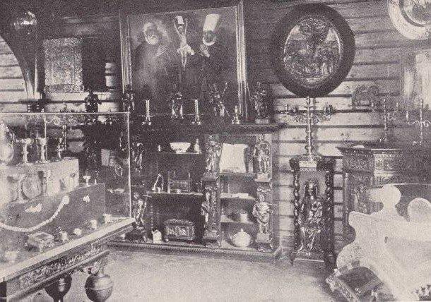 Føj hertil en Mængde Sølvsager, en Alterkalk fra 1487, smaa Snapsebægre fra det 17 de Aarhundrede, et i en Hvalrostand udskaaret Mariabillede, et Utal af pragtfulde Bælter, Altertavler, udskaarne Træfigurer m. m. – saa har man et svagt Begreb om den enestaaende Samling, der af Konsulinde Vidalin er stillet til Raadighed.