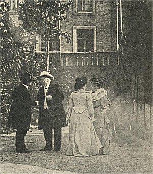 – Denne Vej, Deres kongelige Højheder, sagde Fru Emma Gad til Kronprinsessen, og bagefter fulgte Forfatteren Steffensen med Prinsesse Victoria og Moses Melchior, der nu havde travl med at forklare Prinsen af Schaumburg-Lippe en Mængde Ting.