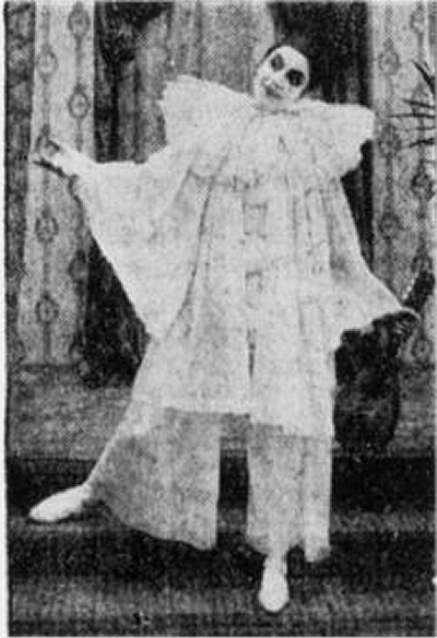 — Det har det ikke manglet paa; men nu vil jeg ikke tilbage. Jeg har optraadt i et Par Pantomimer i Udlandet: en Pjerrot-Pantomime, hvori jeg har spillet en Harlekin, der fik sine øjne brændt ud med et glødende Jern — det var ikke let at gennemføre et saa stærkt Melodrama uden Ord — og en Zigøjner-Pantomime. Og alle mine Film har jeg spillet i forskellige Egne af Tyskland, en enkelt her i Danmark og en i Spanien.