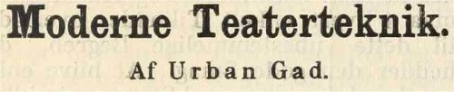 Paa ethvert Teater vil man da ogsaa paa disse meget vigtige Omraader kunne finde talrige større eller mindre Forsyndelser, og alle disse, maaske hvert for sig ikke meget betydende Fejlgreb hober sig op til at være den uoverstigelige Mur, der skiller Virkeligheden fra Teatrets Gengivelse deraf. Man har længe anset det som uundgaaelige Onder, men i Tyskland, der jo er videst fremme i al Teaterteknik, har man i de seneste Aar søgt at raade Bod paa Skaderne.
