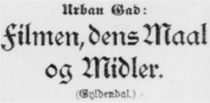 Den dag blev de første Taarer fældet i et dansk Biografteater, og det er derfor ogsaa rimeligt, at Peter Urban Gad bliver den første, der skriver en Lærebog i Kunsten at filme. Bogen udkommer i de nærmeste Dage paa Gyldendalske Forlag, og det bliver da første Gang at en af den stumme Kunsts Repræsentanter giver sig til at tale.