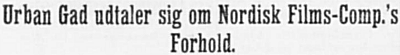 Vi spurgte ham, hvad der efter hans Mening var den egentlige Grund til det Sammenbrud, som Nordisk Films Co.s Masseafskedigelse af sit Personale vel egentlig betyder. Urban Gad svarede: