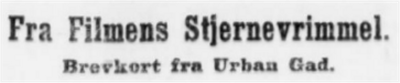 En af de nærmeste Dage udsender den bekendte Filmsforfatter og Instruktør, Urban Gad, et stort, illustreret Værk om Filmen.