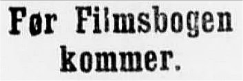Hos Gyldendal er udkommen ovennævnte Værk, der er sikker paa et stort Publikum. Tidens Løsen er jo “Filmen” – – et mægtigt Opsving har denne nye Form for Kunstens Udformning taget, og ubeskrivelig stor er den Hær af Mennesker, der paa den ene eller den anden Maade, direkte eller indirekte er interesseret i “Filmen”.