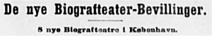 I Dag foreligger følgende officielle Meddelelse om, hvem de lykkelige er, der har faaet de nye Biografteater-Bevillinger:
