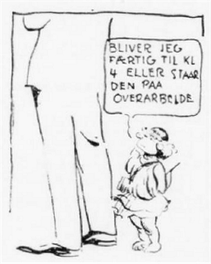 “Vi kan ikke begynde, Hr. Gad”, erklærrede Underregissøren indigneret, “der er nu otte Englebørn paa Toilettet”.