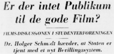 Filmsdiskussionen er aabenbart brændende – og der var fuldt i Studenterforeningens store Sal, da man i Aftes havde sat “Filmen” paa Programmet.