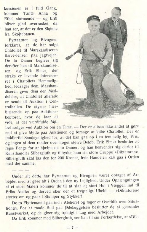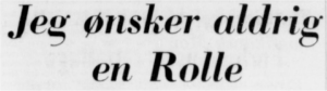 Man har bedt mig om at se mig om efter unge Talenter. Jeg kan dertil kun svare, at jeg i høj Grad set mig om, hvor jeg kommer hen, i Selskaber, i Teatre, i Sporvogne og Jernbaner og paa Gader og Stræder, og jeg er vant til at bedømme Typer, men jeg har ikke fundet en eneste Mand jeg kunde anvende.