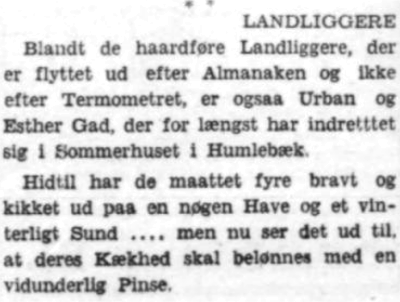 Direktør Urban og Fru Esther Gad havde indbudt hele Personalet fra Grand Teater til at tilbringe første Pinsedag paa deres smukke Landsted i Humlebæk