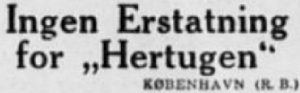 Direktør Urban Gad havde ved Landsretten krævet Akts. Constantin Film dømt til at betale 10,000 Kr. i Erstatning, fordi Selskabet i Strid med indgaaede Aftaler havde overdraget Scala Bio Retten til Opførelsen af Sukces Filmen “Hertugen søger Natkvarter”. Landsretten udtaler, at det ikke kan anses som bevist, at der var indrømmet Direktør Gad en Ret til at have Filmen paa Haanden, eller godtgjort, at der var truffet en endelig Aftale om hans Ret til at opføre Filmen.