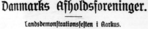 Danmarks Afholdsforening afholder i disse Dage sit Aarsmøde i Aarhus, og dets første Dag – Søndagen – benytter den samlede Afholdsbevægelse Landet over til en stor Demonstrationsfest.