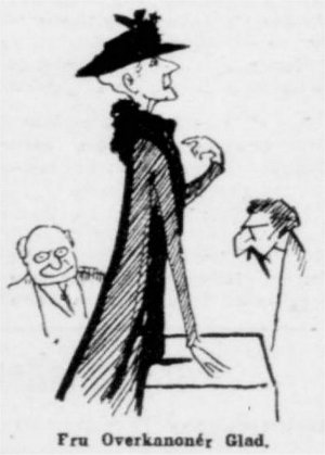 I skulde have hørt, hvilket Spektakel, der blev. De ligefrem hylede af Begejstring, og Adolf trampede i Gulvet baade med Benene og Stokken. Saa løb en Herre op paa Talerstolen, jeg tror han hed Grammofonagent Wælling, og han vilde da varmt slutte sig til den sidste ærede Taler og foreslaa, at man tog Pengene fra de vestindiske Millioner, der laa i London og havde Voksværk, eller ogsaa fra Klasseloteriet, naar vi fik Sænderjylland tilbage. Det raabte de ogsaa “Hørt” til og vedtog saa en Resolition, hvori det bl. a. hed, at Det røde Teaters Venner samlede til et Møde vedtager énstemmig ikke at hjælpe Teatret for vore egne Penge, men osv., ja der var saa meget. Alle var saa glade paa dette Tidspunkt, og der var en Fru Overkanonér Glad, hun ligefrem sprang op paa Talerstolen og takkede baade Hr. Sippe og Hr. Wælling. Tak, Tak sagde hun, ohsaa til Adolf, der svarede: ahh jeg bér! Jeg gad vist, om det var for Forslaget om Bajerne, hun takkede. Saa blev der raabt Leve for Teatret, og vi gik hver til sit. Enhver skulde saa faa nærmere Besked.