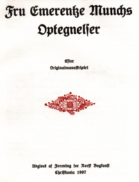 Fra gamle Dage, 1883 – En gammel Dames Optegnelser, 1895 – Fru Emerentze Munchs Optegnelser. 1907.