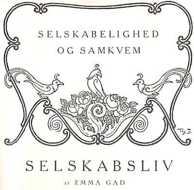 Den 23de oprinder endelig, det store Øjeblik, hvor Lensgreve, Hofjægermester Aggerhjelm og Hds. Naade Grevinden, naar de betræder den etatsraadelige Salon, indvier dens Indehavere til Delagtighed i det højeste Selskabsliv. Gæsterne er ved at samles. Med megen Besvær er til sidst en til lensgrevelige Forhold nogenlunde svarende Kreds bragt paa Benene, med Undtagelse af de usalige Mortensens, som, tarvelig klædte og maaske lidt trykkede af det mindre gemytlige ved Situationen, har anbragt sig i en Krog. Ellers funkler det med Pailletter, vajer med Hejrefjer, svæver med Flor, da alle Damerne under Haanden er blevet underrettede om de notable Gæsters Tilstedekomst. Etatsraaden med Kors om Halsen og Etatsraadinden i udringet Fløjl staar ved Døren og modtager Gæsterne. Bag Fløjlet banker Hjertet. Ganske vist er Diner’en tip-top, Borddekorationen er en Drøm af dobbelte Kirsebærblomster og lyseblaa Silkebaand, og Etatsraaden har i Dagens Anledning revet sig med et Sæt af Sølvtallerkener, da dette formentes at høre med til et Herregaards-Service i stor Stil. Intet er sparet, men alligevel — man véd aldrig! Der ventes. Konversationen er maaske ikke slet saa morsom og utvungen, som den kunde være, og Etatsraadinden begynder at vifte sig. Omsider springer Fløjdørene op og ind træder Hds. Naade efterfulgt af Lensgreven. Parret udgøres af en førladen Herre med sparsomt Haar og hængende Overskæg og en ikke just ung men meget smækker Dame med Diamanter paa en stiv Frisure og en lang, bøjelig Hals. Man hilser.