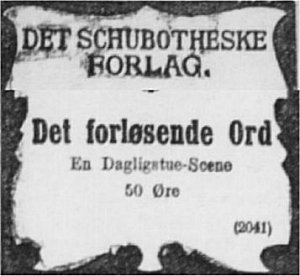 DET FORLØSENDE ORDEN DAGLISTUE-SCENE AF EMMA GAD. FORLAGET AF I.H. SCHUBOTHES BOGHANDEL. GRÆBES BOGTRYKKERI 1900. |