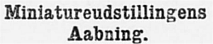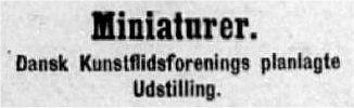 Dansk Kunstflidsforening har haft den gode Idé at foranstalte en Udstilling af Miniaturer.